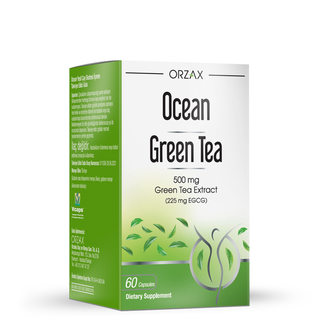 Ocean Green Tea contains 500 mg of Green Tea extract in each capsule. Thanks to its special raw material, it contains polyphenol compounds at a high rate (90%), while EGCG constitutes 45% of 1 capsule (225 mg). Suitable for vegan and vegetarian use.